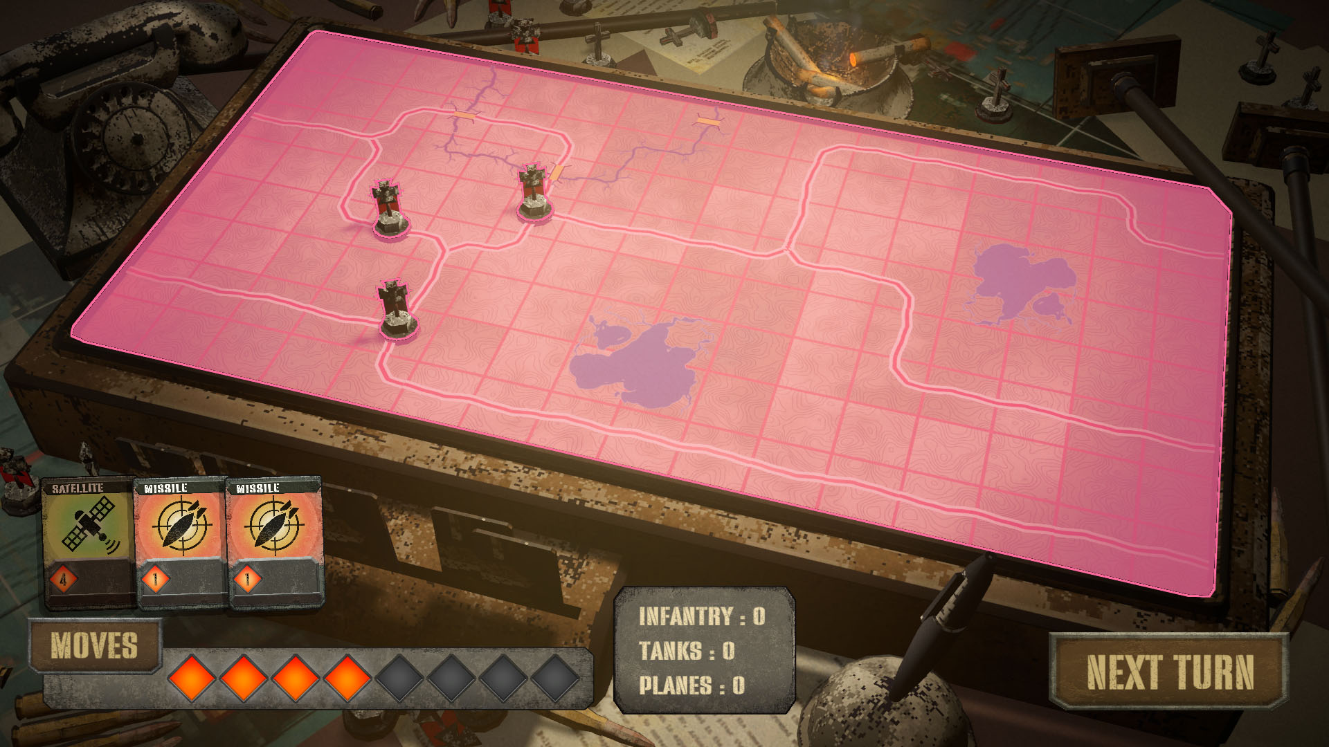 Play as a WWII general trying to defend his lines. Each turn, enemies move towards your base, and the only way to know their positions is to use intelligence cards. The information you get is limited, and you have to be wise to defeat all your foes.